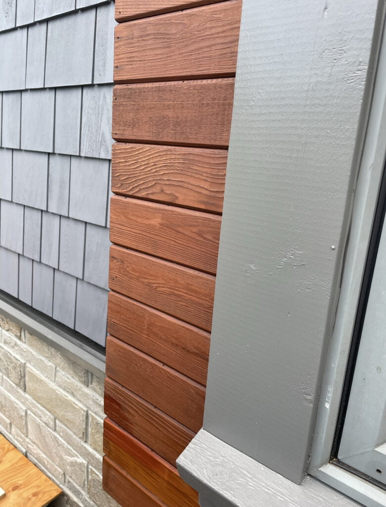 The Wood is Power Sanded & Restained. We Used Benjamin Moore Products on This Project